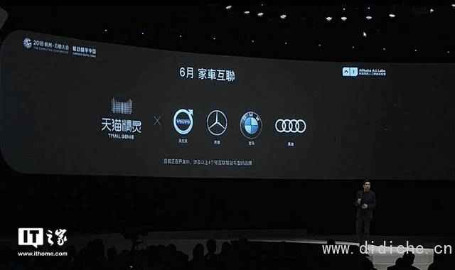 在演示中,家车互联的功能给了大家非常深刻的印象。其实在今年4月,阿里巴巴人工智能实验室(AI Labs)已经宣布与戴姆勒(梅赛德斯-奔驰母公司)、奥迪、沃尔沃三家汽车行业合作伙伴达成合作,未来三巨头具备联网功能的量产车型,都支持天猫精灵语音助手,基于“AI+车”服务能提供车内语音人机交互能力和多种云端生态服务。“AI+车”是人工智能实验室为汽车行业提供的AI解决方案,它能让具备联网功能的汽车与天猫精灵互通,并获得车内的语音人机交互能力和多种云端生态服务。