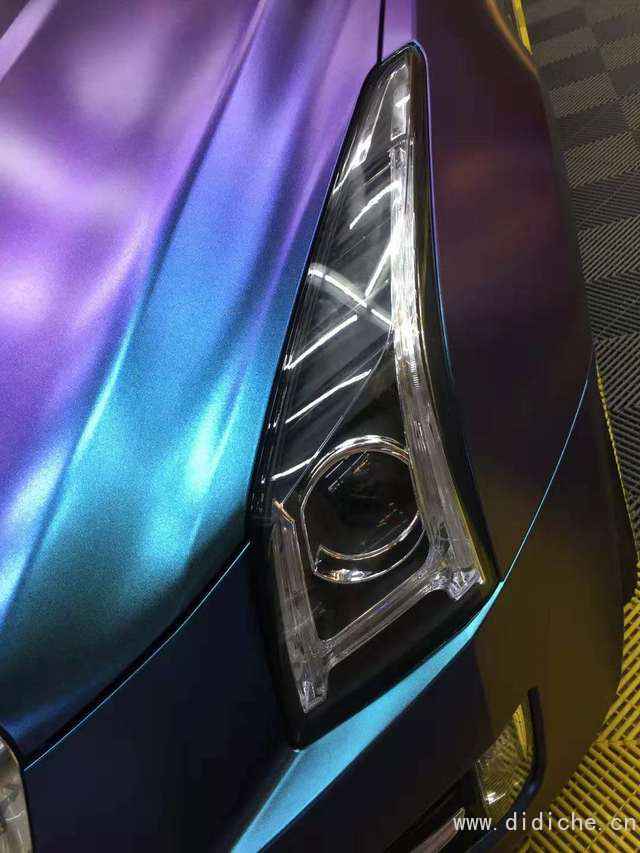 整车贴完效果,在光线直射到的车身地方是明显的紫色,然后就颜色在蓝紫渐变的过程。这样的车身颜色开到那里也是大家关注的目标啊。在停车场只有众多的车中很快以会找到自己的爱车了,再也不会有偶尔拉错车门的尴尬了!