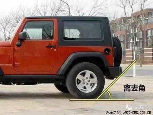 离去角是指汽车满载(最大总质量)静止时,自车身后端的凸出点向后车轮所引的切线与路面之间的夹角。