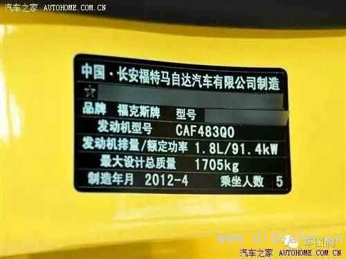 有一些车型在铭牌上标注的是最大设计总质量(如上图),这样会使很多人误以为其就是车辆的整备质量。如果稍有经验的人就会看出,一辆福克斯的整备质量是不可能达到1700kg的(这个整备质量快接近奥迪A6这个级别的车型)。而这个最大设计总质量是指装满乘客(包括驾驶员)、货物时的质量,对于一般的5座乘用车来说,根据国标,车辆至少要能承载375kg的质量,所以大家可以据此大致推算出车辆的整备质量。