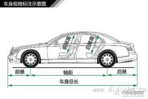 在买车时要了解一款车的空间,当然要看车的总长、轴距等参数。现在各汽车厂商对于车身规格的标注,基本上都统一了,如车身总长、轴距、轮距、前悬、后悬等,有些参数如车身总宽、总高会略有不同。
