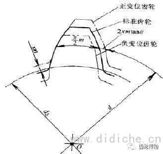 从齿根弯曲强度分析,小齿轮作正变位,齿根变厚;大齿轮作负变位,齿根减薄。如变位系数恰当,可使这两只齿轮的齿根弯曲强度相等。从齿面磨损方面分析,小齿轮作正变位,齿顶圆增大,大齿轮作负变位,齿顶圆减小,如变位系数恰当,可使这两只齿轮的齿根的最大滑动比相等,提高了小齿轮的齿面抗磨能力。