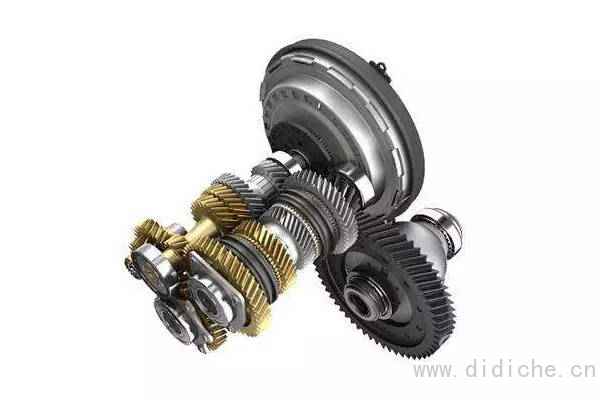 双离合模块主要就是变速箱的齿轮组结构,负责执行控制模块升降档指令,因为其结构上与传统的行星齿轮AT不同,始终有一个档位处于“ready”状态,所以能够做到快速反应,大大提高档位的切换速度,且动力损失少,这就是双离合变速箱相比6AT最大的优势。
