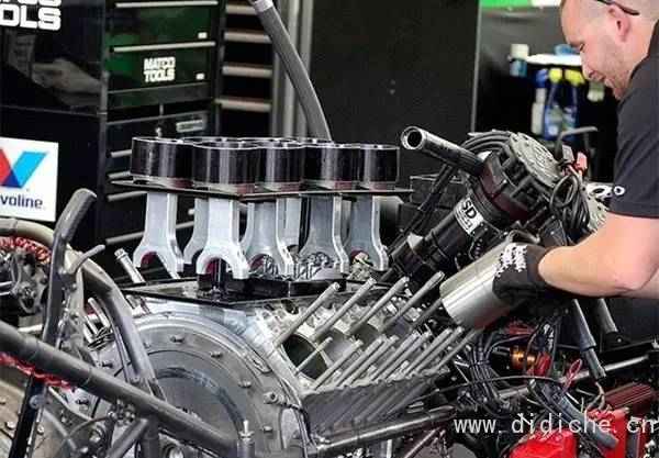 NHRA规定Top Fuel赛车只能使用14-71型Roots blower机械增压器。再配合燃料喷射器,整套动力单元的最大功率就能超过一万马力了。