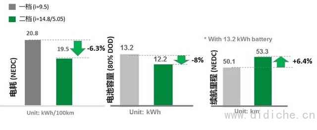 舍弗勒公司提供的数据表明,使用两挡电驱动桥的电动汽车在动力性和经济性上更有优势,尤其是对于SUV车型而言。在动力总成不变的情况下,采用两挡电桥比采用一挡电桥的电耗可以降低6.3%,电池容量可以减少8%,续航里程增加6.4%。