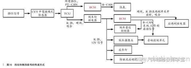 综合上述控制原理,可以看出BCM中的倒挡信号有两种传递方式: