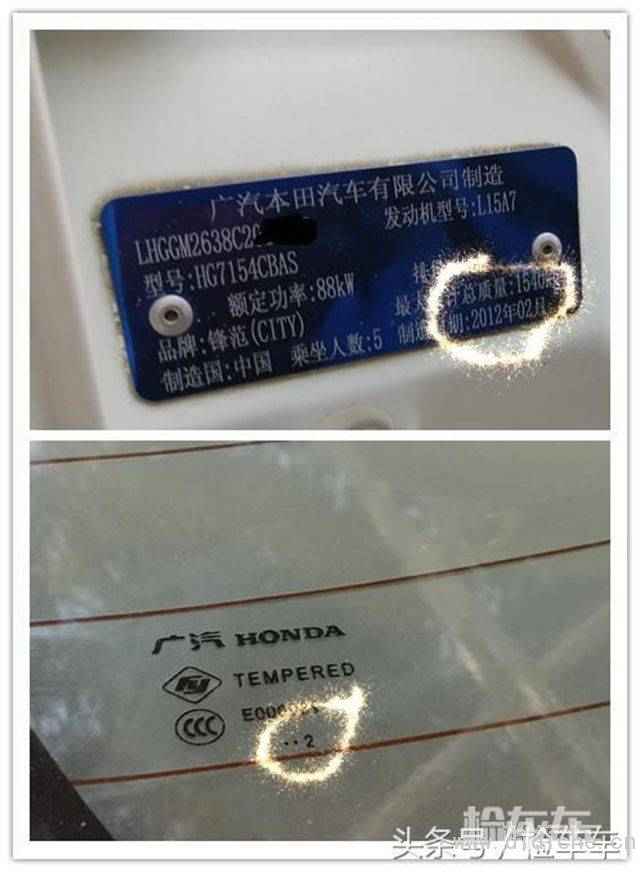 后档玻璃晚于出厂日期,说明曾更换(玻璃上2代表12年,2前面两点说明上半年出厂,2减7等于5月)