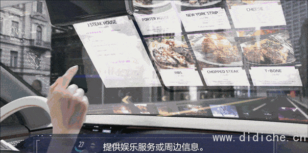 当你将要抵达目的时,通过娱乐来彻底释放自己吧。在行驶过程中,车辆便可通过前窗显示,为驾驶者提供娱乐服务或周边信息,提前预定休闲的场所。