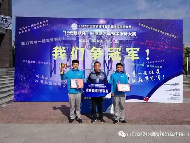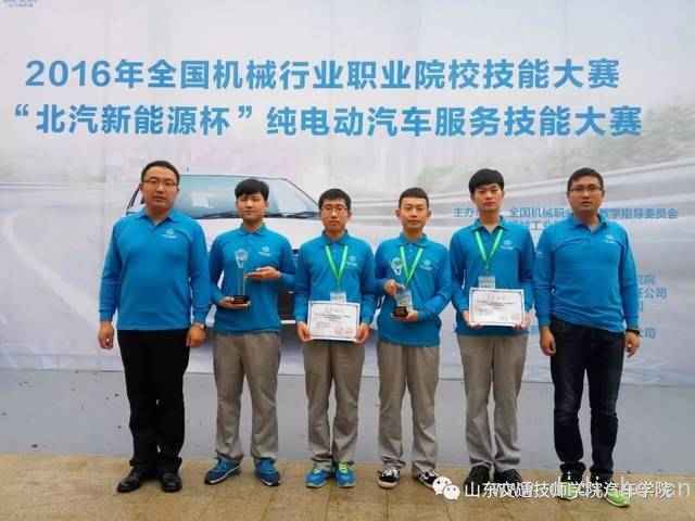 在技能大赛方面,学院也积极组织师生参加,2016和2017连续两年赵利老师和韩炯刚老师组织学生参加全国新能源汽车技能大赛,取得了丰硕成果。2016年7月,指导学生参加"清华•行云杯”全国首届新能源汽车知识与技能大赛,获得了全国高职组二等奖,两位老师个人获得"全国机械行业职业院校优秀指导教师”称号。2016年10月,指导学生全国机械行业职业院校"北汽新能源杯”纯电动汽车服务技能大赛一等奖(高职),二等奖(中职),两位老师获得"全国机械行业职业院校优秀指导教师”称号。2017年10月指导学生在全国节能与新能源汽车产教联盟--新能源汽车技术与维修技能大赛,获得全国二等奖第一名。2017年11月,指导学生在全国机械行业职业院校"行云新能杯”纯电动汽车技术服务大赛,获得全国一等奖,两位老师获得"全国机械行业职业院校优秀指导教师”称号。2017年12月指导学生在"北汽新能源杯”全国职业院校新能源汽车服务技能大赛,获得高职组二等奖,两位老师获得"优秀指导教师称号”。
