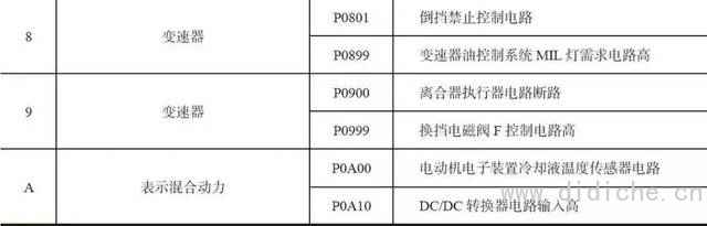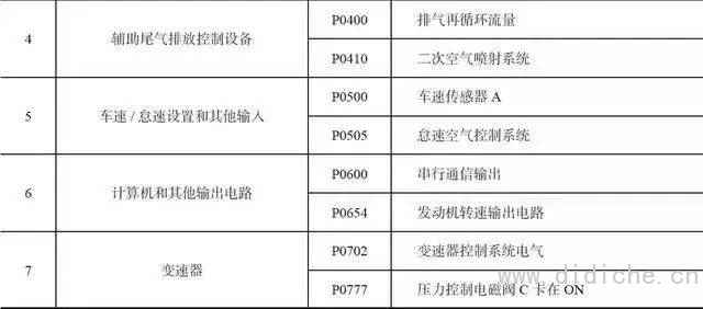 ⑦ P0700系列代码与变速箱控制功能有关。