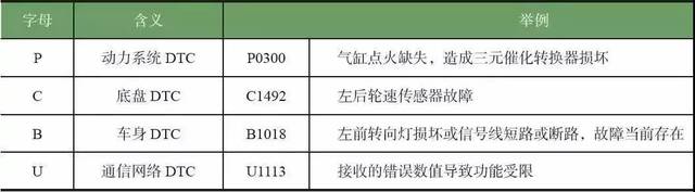 故障码包含了五个字符,第一个是字母,后边的四个是数字。