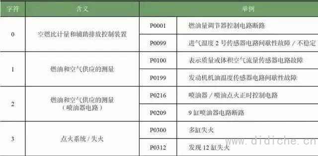 故障码P0×00中第三个字符确认故障码发生的系统或子系统。