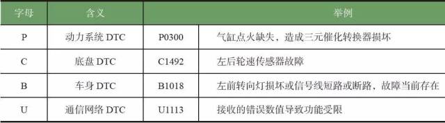 故障码包含了五个字符,第一个是字母,后边的四个是数字。
