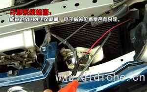 检查进风口或进风格栅、电子扇等位置是否有杂物。可以用压缩空气吹走灰尘,在发动机冷却状态下,可用水枪由里向外冲洗上述部位。