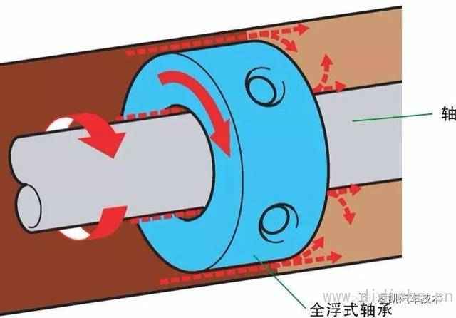 全浮式轴承由机油冷却,在轴和壳体之间自由旋转,减少了摩擦,因此轴可以高速旋转。