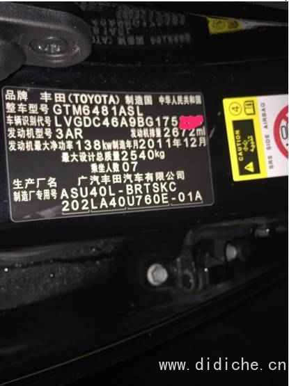 2011年丰田汉兰达。排量2.7.发动机最大功率138KW.187.6HP