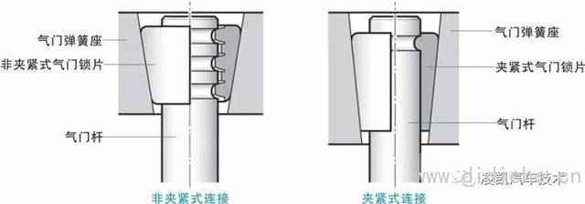 气门锁片位于气门尾部,其作用是固定气门,防止气门脱落掉入气缸。它通常和上气门弹簧座配合使用。气门锁片内表面有多种形状,相应地气门尾端也有各种不同形状的气门锁片槽。