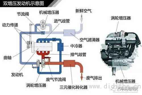 双增压发动机示意图(涡轮增压器+机械增压器)