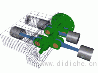 连杆连接活塞与曲轴。两端均可旋转,因此活塞运动及曲轴旋转时连杆角度发生变化。