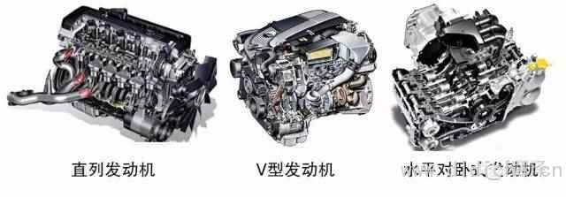 发动机的核心是气缸,活塞在气缸内上下运动。以上所说的是单气缸发动机。多数草坪割草机都只有一个气缸,但多数车辆的发动机却不止一个气缸(常见的有 4气缸、6 气缸以及 8 气缸)。多气缸发动机的气缸排列方式通常分 3 种:直列式,V 型或水平对卧式(又称为水平対置式或対置式),如下图所示。
