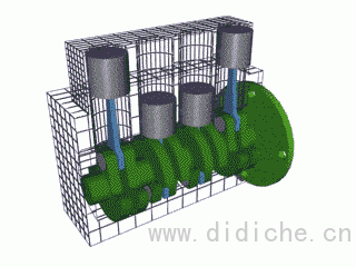 曲轴将活塞的上下运动转换为圆周运动,原理类似于玩偶盒的摇把。
