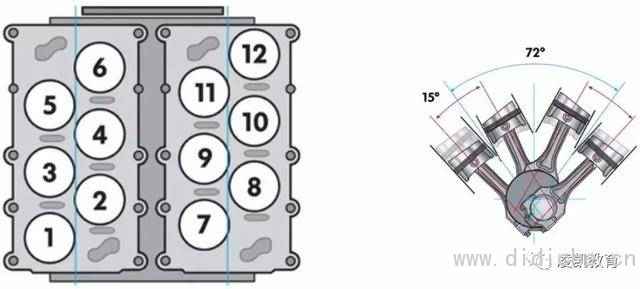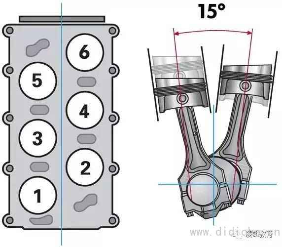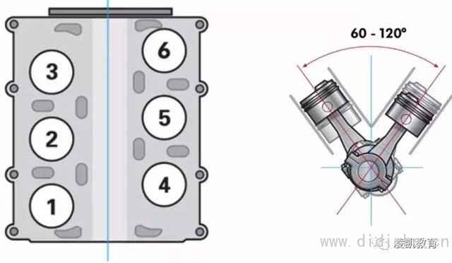 为了让发动机缩短,V型发动机中的气缸布置成60°到120°的夹角,并让气缸的中心线与曲轴的中心线相交。