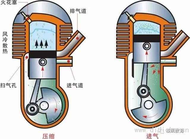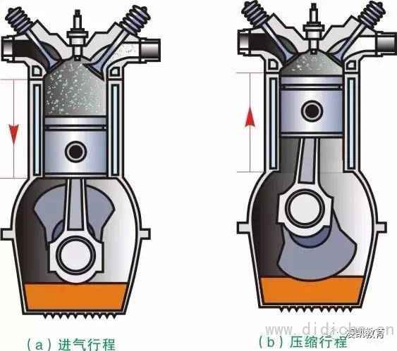 活塞式内燃机每完成一个工作循环,便对外作功一次,不断地完成工作循环,才使热能连续地转变为机械能。在一个工作循环中活塞往复四个行程的内燃机称作四冲程往复活塞式内燃机,而活塞往复两个行程便完成一个工作循环的则称作二冲程往复活塞式内燃机。