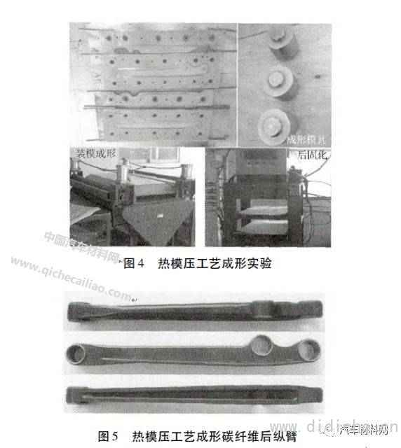 碳纤维后纵臂可以采用以下较为成熟的低成本成形工艺: 热模压工艺、树脂传递模塑工艺和真空导入工艺。这3 种工艺均可用于连续纤维增强零件的成形。