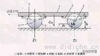 一、作用把车架与车桥弹性连接起来,吸收或缓和车轮在不平路面上受到的冲击和振动,传递各种作用力和力矩。