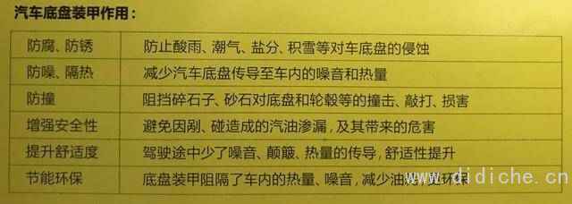 免潮气、酸雨、盐分对车辆底盘金属的侵蚀,能够减轻驾驶时道路和轮胎的噪音,提高车主的驾驶舒适度。