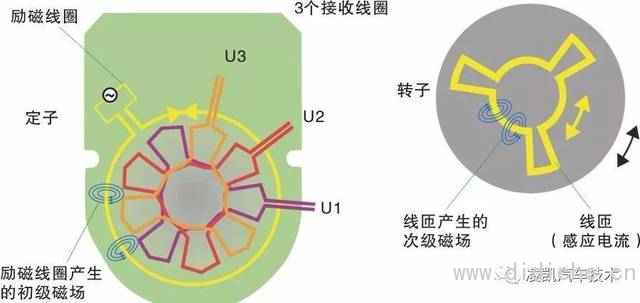 转子中的感应与角度位置无关,但接收线圈的感应取决于它与转子之间的距离和其角度位置。