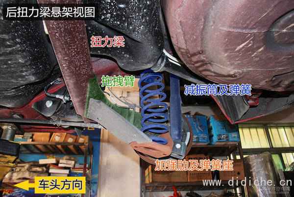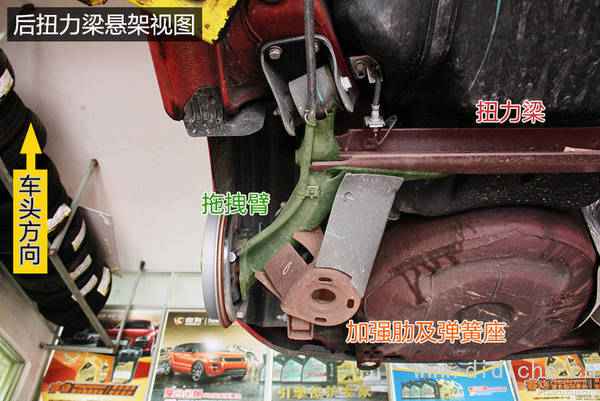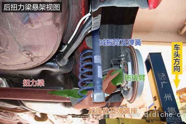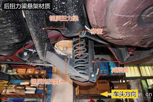 扭力梁式后悬架的结构简单,制造成本低,容易维修且占用车底空间较小,可降低车底盘的高度,从而车内空间得以增加,因而常用于小型车。