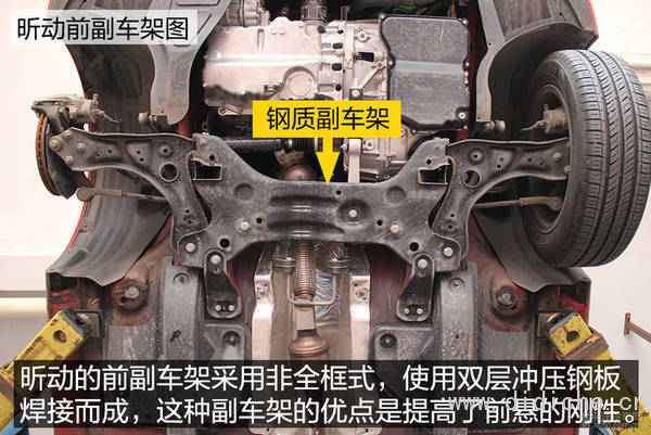 昕动的前副车架采用双层冲压钢板焊接,但并不是全框式副车架,而非全框式副车架的主要作用就是为了连接悬架杆件。