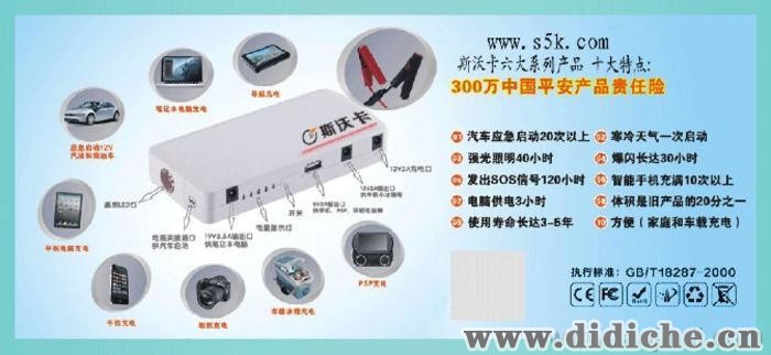 有用过汽车应急启动电源的没有??当然有,斯沃卡汽车应急启动电源,100%正品,让你无任何后顾之忧,斯沃卡瞬间启动,你还怕抛锚吗??应急汽车启动器应急汽车启动器是我们公司主要产品。当您的爱车没电的时候,无需外接任何电源.只要把我们的S5K到您爱车的点烟器座里.就可以把您遇到棘手的问题迎刃而解,它还提供一个12V的直流电压和一个USB输出,可以给您的手机和其它的汽车电器供电.它使得车主感受到舒适和方便.这种创新的产品给任何有困难的车主提供了方便. 我们很高兴向您介绍我们的公司.我们的产品以其稳定,可靠的性能和有竞争力的价格出口到国外很多国家. 如果您对我们的产品感兴趣,请告诉我们您需要的产品型号及设计,我们将会及时回复所有我们能提供的详细信息. 感谢您关注我们的产品,希望在不久的将来我们能建立良好的合作关系. 联系人:邓生咨询电话:18211437793QQ:869328769定做红酒柜http://www.jielimy.com,工厂直订,质量保证。