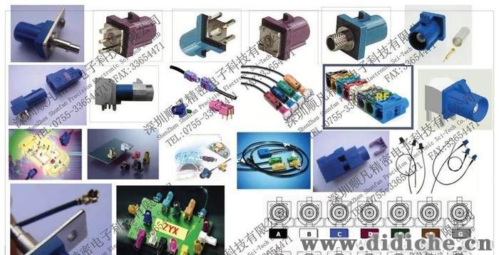接插件是目前汽车广泛采用的部件,应用于:导航系统、远程控制、车载电话、车载电视、音响设备、天线等功能 特征: 具有二次锁紧功能;通过颜色和防错结构进行正确匹配 接插件更好的被护套保护 便于安装 连接器和护套不会混淆 产品技术说明: 电气特性: 阻抗:50Ω