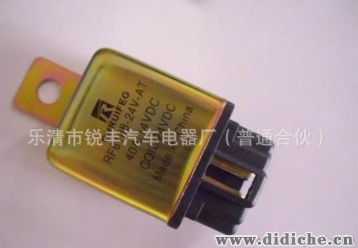 乐清市锐丰汽车电器厂Http://www.ruifengrelays.com外形尺寸(mm)L X W X H: 28x23x41.5线圈电压(VDC): 12,24线圈功耗: 1.5W触点材料: Sliver Alloy触点形式: 1A触点切换电流(A): 40A触点负载: 40A14VDC环境温度: -40~85介质耐压:触点间: 50Hz 550V触点与线圈间: 50Hz 550V绝缘电阻: 100 MΩ接触电阻: <=50 Mω电气寿命:1×105机械寿命:5×105重量:43g