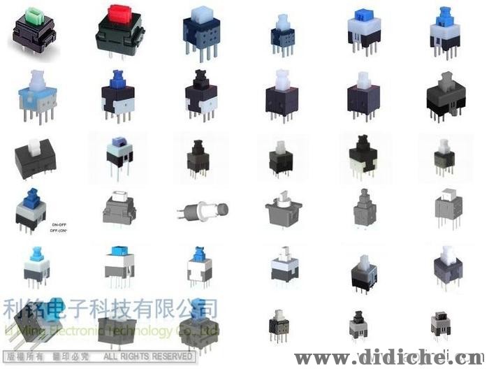 - 型号专注研发自锁按键开关/按键开关/轻触按键开关/拨动开关/键盘开关/微动开关/USB插口/耳机插孔/DC接口/复位开关/推动开关/翘板开关/门锁开关/振动开关/带灯开关/防水开关等。各项开关插座主要应用范围广及电讯、消费电子产品、工业自动化器材、汽车专用零部件、影音设备及玩具、医疗仪器仪表、家电产品等。同时,可为客户提供“定制化”产