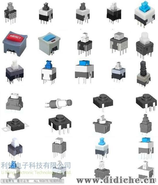 - 型号专注研发自锁按键开关/按键开关/轻触按键开关/拨动开关/键盘开关/微动开关/USB插口/耳机插孔/DC接口/复位开关/推动开关/翘板开关/门锁开关/振动开关/带灯开关/防水开关等。各项开关插座主要应用范围广及电讯、消费电子产品、工业自动化器材、汽车专用零部件、影音设备及玩具、医疗仪器仪表、家电产品等。同时,可为客户提供“定制化”产