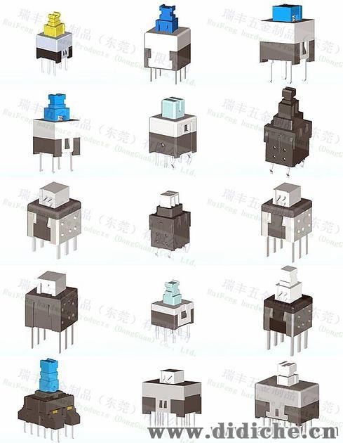 - 型号瑞丰主生产耳机插座,轻触开关,按键开关,微动开关,自锁开关,按钮开关,拨动开关,滑动开关,DC插座,复位开关,直键开关,USB插座,震动开关,门锁开关,键盘开关,叶片开关等