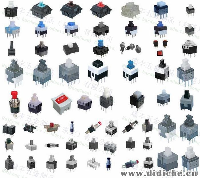 - 型号瑞丰主生产耳机插座,轻触开关,按键开关,微动开关,自锁开关,按钮开关,拨动开关,滑动开关,DC插座,复位开关,直键开关,USB插座,震动开关,门锁开关,键盘开关,叶片开关等