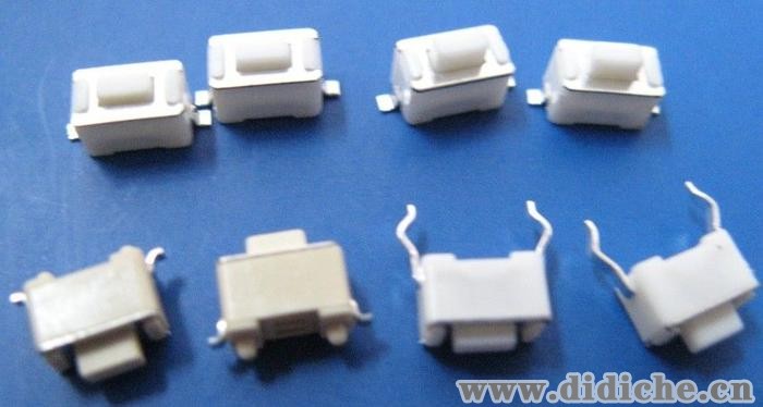 联系人吴小姐: 0755-88856285 QQ:10292736896x3.5x4.3贴片式轻触开关 汽车音响设备贴片轻触开关产品介绍: 数量:2000PCS/包 可编带包装 1500PCS/盘 产品尺寸6x3.5x4.3/5.0mm操作力:130g 180g 250g 材料环保,耐高温260,寿命10万次,主要用于汽车DVD,防盗器遥控器等电子产品