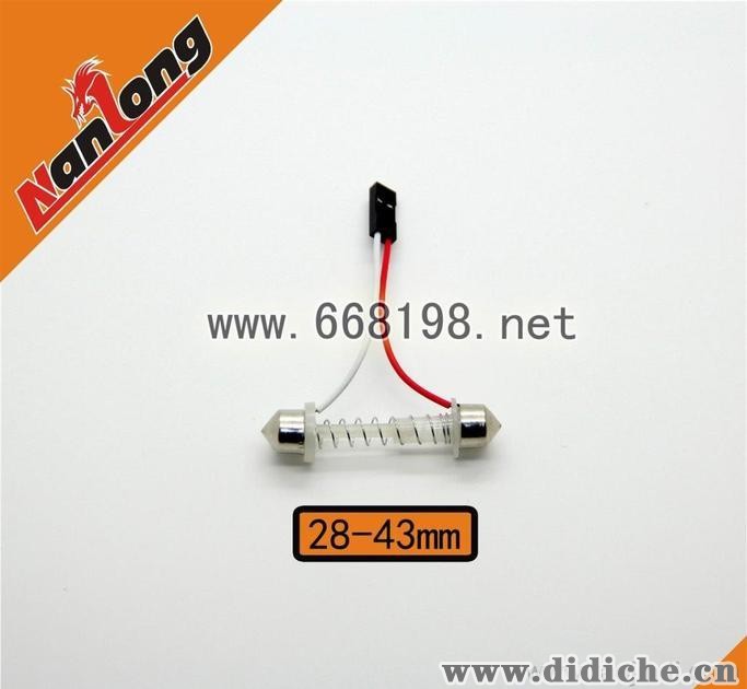 产品专利号:ZL 2011 3 0385878.9 通用型双尖弹簧接头由于装有弹簧,其长度可从29mm到41mm之间伸缩,所以可适合于29mm、31mm、36mm、39mm、41mm等各种规格灯头LED阅读灯的改装。 本通用型双尖弹簧接头质量优良,双尖头铜质镀镍,弹簧钢质镀镍,不易生锈,是一般铁质双尖头不可比拟的哦。 ①您还在为自己的阅读灯、顶灯的双尖插头过长,又或者太短而烦恼的时候,好好的灯就此不能安装了。 ②双尖弹簧头可以帮到你们! ③此插头可用于室内灯、阅读灯、门灯、牌照灯、侧转弯灯等等...... ④本产品可应到2.8CM--4.2CM的插座,无需改装,安装方便! ⑤希望这个小东西可以帮到您。