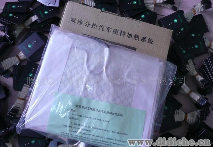 双座无开关智能自控温汽车座椅加热系统.一. 组成:由四片热片和一条线组成.二. 安装方法:<1>.首先将前排座椅的外套取下来,将四片加热片贴于前排座椅的座和背上.带有四芯插头的热片要安装固定在主驾驶和副驾驶的座位的座上.<2>.将四片热片电极线从座和靠的中缝顺于座椅下面.<3>.将座和靠的两片热片与主线上的插件对插.<4>.主线上有三条引出线,红色线,黑色线,黄色线.将红色线接于电流大于10A的地方,汽车熄火后,这点应没有电压.三. 将黑色线接搭铁线上,如座椅下面的固定螺母下面.黄色线接于ON线上.<5>.将主线放于地脚下面,把座椅的座和靠背的座套再套回原位,此时安装完成,可以试用了.四. 测试方法:<1>.先启动汽车.<2>.如果是冬季,当车内温度低于零上13度时,主座椅和副座椅如果同时有人乘坐时,此时座椅自动加热,自动达到人体所需温度.说明安装正确.五. 使用方法:<1>.在冬季,汽车启动后,主驾驶座椅自动加热.如果副座椅有人乘坐,此时也加热。<2>.座椅温度自动达到人体所需温度.<3>.汽车关闭钥匙门后,加热自动停止.六. 注意事项:<1>.三条与汽车电源相接的线,要接对位置,要接牢.<2>.接插件要互相插到位,不要把插片插到插孔外面去.<3>.用双面胶将热片固定在座椅上面.<4>.控制盒放在主座椅背面,用拉扣固定在座椅背面。<5>.如果座椅加热失控,把主线与控制器盒之间的接插件拔下即可. 北京暖世康汽车座椅加热系统有限公司 电话:13021243672 邮箱:w2188@yahoo.cn