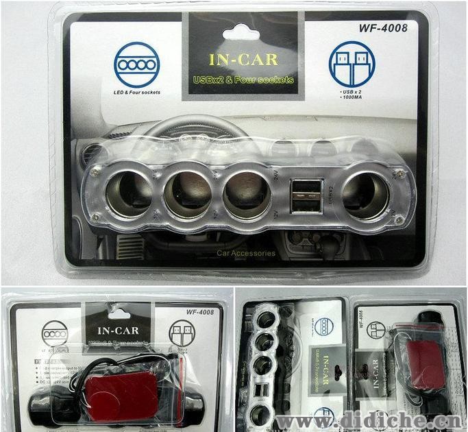 汽车点烟器/一分四点烟器WF-4008/双USB点烟器/电源分支器