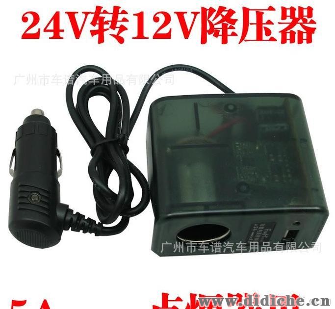 5A车载电源转换器24V转12V 降压器汽车充电器带USB点烟器插头工厂