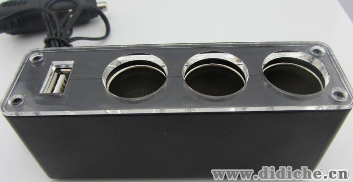 车载一分三带USB点烟器插座直插 汽车点烟器一拖三 一转三分配器