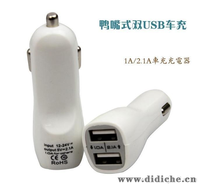 10.冷却方式:自然冷 适用范围: 真正的iPad 、iPhone/ipod可同充电的车载充,2.1A为ipad充电,1A为iphone/ipod充电,也可以为SAMSUNG、HTC、NOKIA、MOTO等手机或手持电子设备供电。超小的体积,不可思议轻的重量;实际使用中,同时接上iPad和iPhone,温温的手感,非常舒服。 注意事项: 1、请先将车子发动后再插入车充 2、使用后或是汽车熄火后请拔出车充。 3、请勿将车充使用在超过充电规格外的电子产品。 电池总量在2100mA以内的 规格为正常使用范围,以免因规格不符产生任何问题 。 4、车充于使用过程中一定会发热,在正常室温时,发热不超过60度C属正常现象。 5、当车充过流、过温、短路保护后会停止工作(拔出设备后车充自动恢复工作),此时你需检查设备是否跟车充参数相吻合。