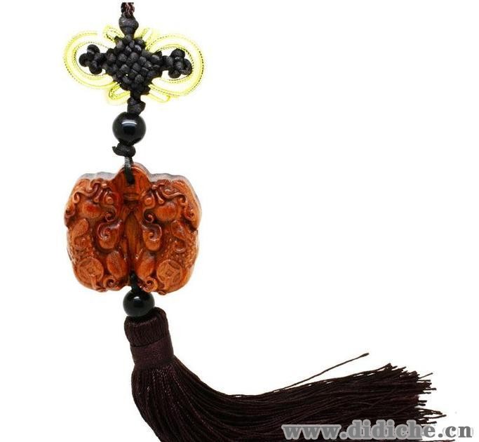 招财双貔貅汽车挂件花梨木挂饰车内饰品|褐色吊穗